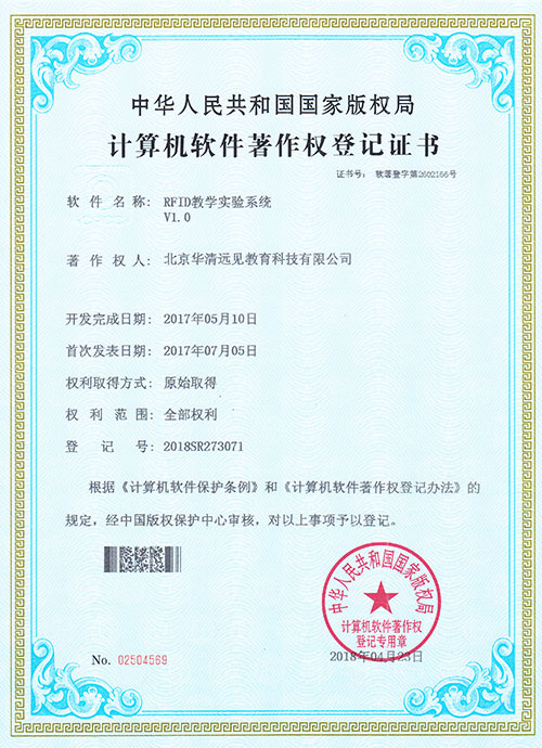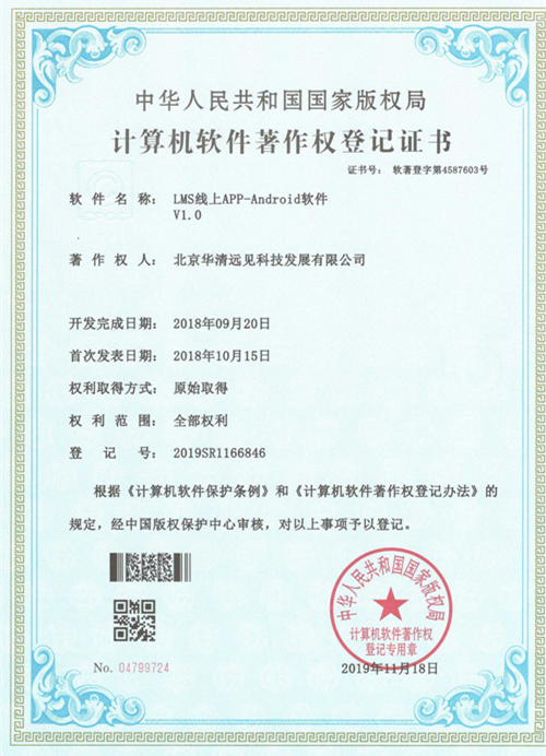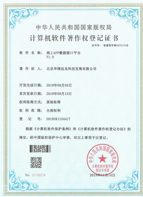 1990年9月,中國(guó)頒布了《著作權(quán)法》規(guī)定,計(jì)算機(jī)軟件是受法律保護(hù)的作品形式之一。而“計(jì)算機(jī)軟件著作權(quán)”華清遠(yuǎn)見(jiàn)新添10項(xiàng)計(jì)算機(jī)軟件著作權(quán)登記證書(shū)