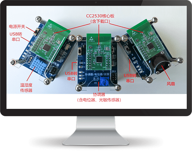通過(guò)分布在教室內(nèi)的無(wú)線傳感器節(jié)點(diǎn)和無(wú)線控制節(jié)點(diǎn),對(duì)教師內(nèi)的環(huán)境進(jìn)行智能的管理,并可通過(guò)觸控屏幕、其他平臺(tái)的瀏覽器網(wǎng)頁(yè),對(duì)教室環(huán)境進(jìn)行實(shí)時(shí)監(jiān)測(cè)和控制。