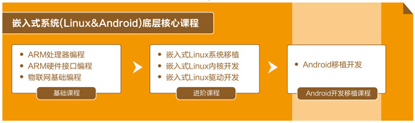 ARM 處理器、Linux 內(nèi)核驅(qū)動(dòng)、Android 移植驅(qū)動(dòng)等內(nèi)容即是核心技術(shù),也是難點(diǎn)部分。課程對(duì)這部分內(nèi)容分為了初級(jí)階段和高級(jí)階段兩個(gè)部分,分別培養(yǎng)不同層次嵌入式工程師。學(xué)習(xí)高級(jí)階段課程,需要經(jīng)過選拔、考試環(huán)節(jié)。