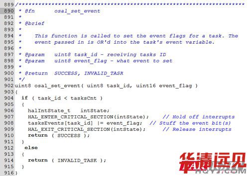 那什么時候才會進入1119行這個分支來處理發(fā)生的事件呢.我們再來認識一個新的函數osal_set_event();這個函數得功能就是標識有事件發(fā)生,我們來分析下代碼.