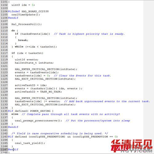 osal_run_system()才是整個協議棧的核心,進入到osal_run_system()后發(fā)現他只有1102-1147這些行代碼.這些代碼就是整個協議棧運轉的大腦,我們務必要把這里搞清楚.
