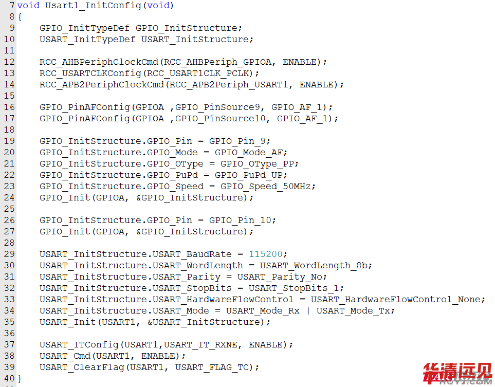 USART初始化: