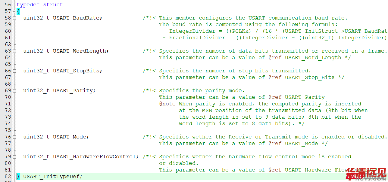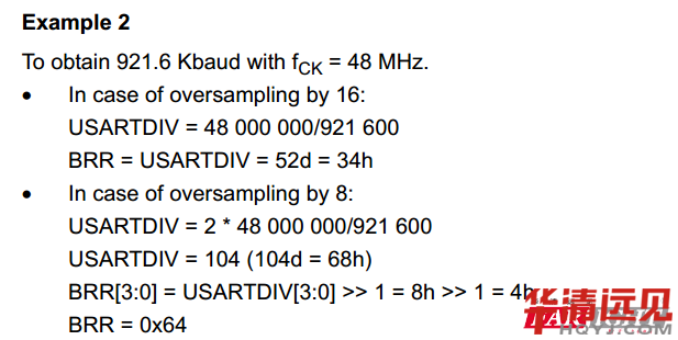 人家講的很清楚,還給咱舉了例子,如何計算,如何配置。其實如上圖的計算過程只是對于玩操作寄存器的人才需要考慮的計算,如果直接用庫函數(shù)開發(fā),直接指定波特率就好了。