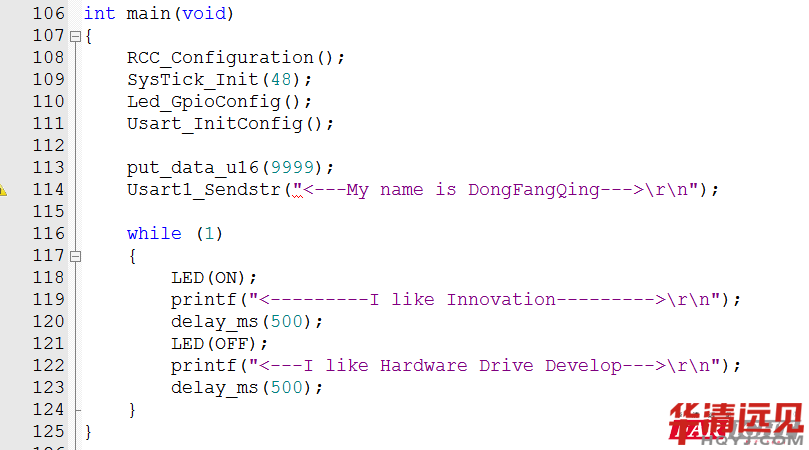 這幾個意思呢??而且,明眼人一看就能看見,在咱的工程中,壓根就沒有調(diào)用int fputc(int ch, FILE *f)這個函數(shù),只是寫在那里了而已,哈哈!其實呢,int fputc(int ch, FILE *f)函數(shù)是printf函數(shù)開放的一個從硬件讀取數(shù)據(jù)的接口,那么在哪里調(diào)用呢??肯定在C標志庫調(diào)用啦!只是咱看不到罷了。所以,不用管它,寫上就好!哈哈!