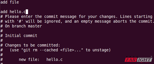 【4】使用git commit,提交本次記錄(記錄為添加新文件),將生成一個(gè)描述修改的log