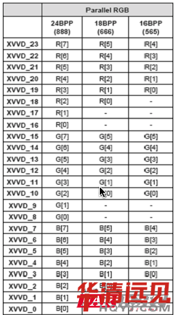 對于8bit單路TTI,輸出接口,共有24條RGB數(shù)據(jù)線,分別是R0~R7紅基色數(shù)據(jù)8條,B0~B7綠基色數(shù)據(jù)8條,BO~B7藍基色數(shù)據(jù)8條,共3*8=24條。由于基色RGB數(shù)據(jù)為24bit,因此,也稱24位或24bitTTL接口。