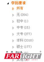 下圖的數(shù)據(jù)是嵌入式研發(fā)工程師招聘崗位對應(yīng)聘人員的學(xué)歷要求:從中可以看到,學(xué)歷的基本要求主要集中在大專及本科學(xué)歷。這一點與很多人之前所認為的:嵌入式專業(yè)多為研究生等高學(xué)歷的要求不一樣。