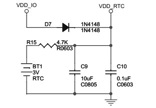 實(shí)時(shí)時(shí)鐘的縮寫是RTC(Real_Time Clock)。RTC 是集成電路,通常稱為時(shí)鐘芯片。RTC通常情況下需要外接32.768kHz晶體,匹配電容、備份電源等元件。RTC除了I/O口的定位不同,還有功能上的區(qū)別,比如與MCU的接口,現(xiàn)在常用的是I2C接口(距離短,可以與其他器件共用)還有RAM的數(shù)量、靜態(tài)功耗大小、中斷的數(shù)量,特別是精度的區(qū)別。 RTC的精度可以說與溫度有很大的關(guān)系,而溫度會(huì)影響晶體的頻率。本章介紹的是集成在芯片內(nèi)部的時(shí)鐘功能模塊。 1 RTC介紹 在一個(gè)嵌入式系統(tǒng)中,通常采用RTC 來提供可靠的系統(tǒng)時(shí)間,包括時(shí)分秒和年月日等,而且要求在系統(tǒng)處于關(guān)機(jī)狀態(tài)下它也能夠正常工作(通常采用后備電池供電)。它的外圍也不需要太多的輔助電路,典型的就是只需要一個(gè)高精度的32.768kHz晶體和電阻電容等,如圖1所示。