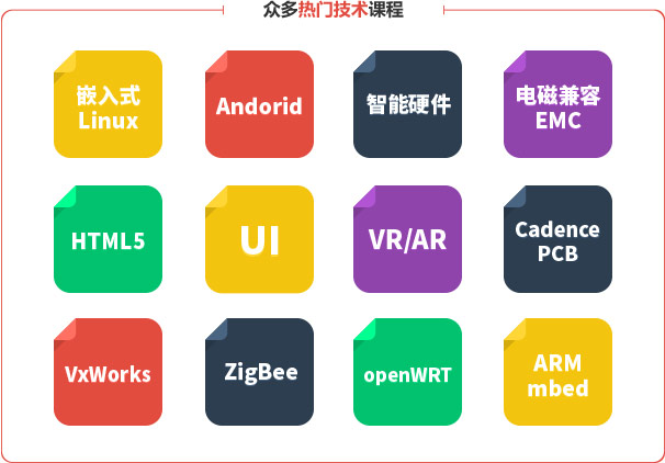 集團(tuán)緊跟科技發(fā)展潮流,專注于高端IT開發(fā)人才的培養(yǎng)。目前線下培訓(xùn)課程涵蓋嵌入式開發(fā)、物聯(lián)網(wǎng)開發(fā)、移動(dòng)互聯(lián)網(wǎng)開發(fā)(Android、iOS、HTML5、UI、VR/AR)三大方向。從長(zhǎng)期就業(yè)培訓(xùn)到短期高端企業(yè)內(nèi)訓(xùn),以及高校師資隊(duì)伍培訓(xùn),課程涵蓋技術(shù)方向廣泛,能夠滿足不同人群的學(xué)習(xí)工作需求。集團(tuán)擁有一支超過百人的師資團(tuán)隊(duì),不乏專家及資深技術(shù)開發(fā)人員。每年在課程研發(fā)、課程更新方面投入巨大的人力物力,目前公開出版教材90余本。在技術(shù)實(shí)力以及實(shí)驗(yàn)設(shè)備配置方面均處于業(yè)內(nèi)地位。