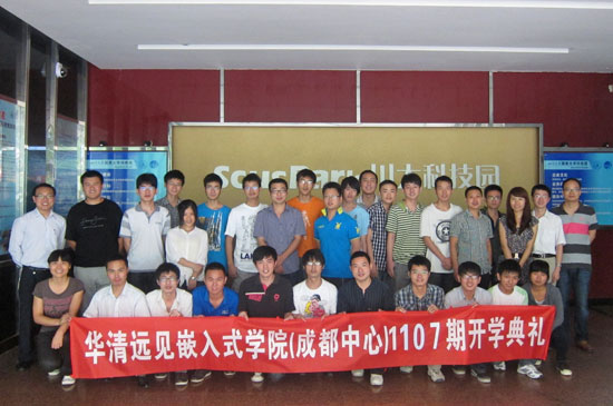 2011年8月1日,是建軍節(jié),也是我們?nèi)A清遠(yuǎn)見成都中心1107期嵌入式軟件開發(fā)工程師就業(yè)班戰(zhàn)隊開學(xué)典禮舉行的大日子。這天大家都早早的來到教室,準(zhǔn)備迎接這重要的一天。上午九點,在嵌入式實驗室一,在大家的一片片熱烈掌聲中,典禮開始了。出席本次開學(xué)典禮的有:成都中心負(fù)責(zé)人;陶老師,授課老師:李老師、王老師、周老師,以及課程咨詢、班主任、教務(wù)和就業(yè)等各部門諸位老師。本次開學(xué)典禮由1107期班主任李老師主持。