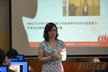 | 圖一、華清遠(yuǎn)見執(zhí)行總裁賈老師介紹本次培訓(xùn)內(nèi)容和目的 | 圖二、華清遠(yuǎn)見技術(shù)總監(jiān)劉老師講解師資班培訓(xùn)課程體系 |