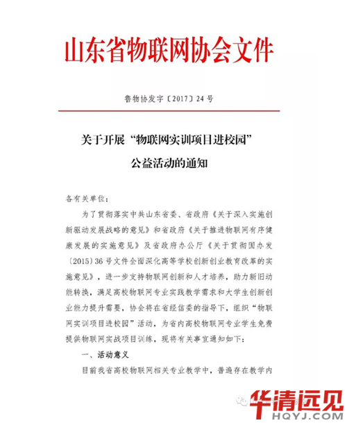學(xué)生和企業(yè)“零距離”,再惡劣的天氣,再緊迫的時(shí)間 都阻擋不了企業(yè)對(duì)我們學(xué)生的鐘愛(ài)。 17年是一個(gè)不同凡響的一年,也是個(gè)為繁忙的一年 2017年11月,濟(jì)南華清遠(yuǎn)見(jiàn)和山東省物聯(lián)網(wǎng)協(xié)會(huì)共同承辦了“物聯(lián)網(wǎng)實(shí)訓(xùn)項(xiàng)目進(jìn)校園”公益活動(dòng)。 為山東省高校的物聯(lián)網(wǎng)人才提供“雙驅(qū)動(dòng)”,進(jìn)一步提升山東省物聯(lián)網(wǎng)創(chuàng)造力大賽作品質(zhì)量。