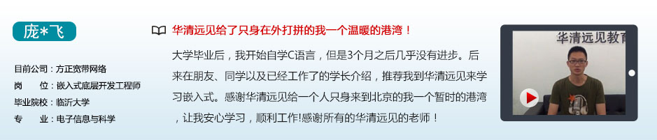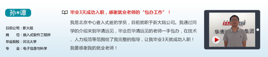 C語言大神,做底層開發(fā)。建議大家一定要不懂就問,多動(dòng)手編程。工作遇到問題了還會(huì)給華清遠(yuǎn)見老師打電話。跳槽以后一定會(huì)拿到想要的工資。