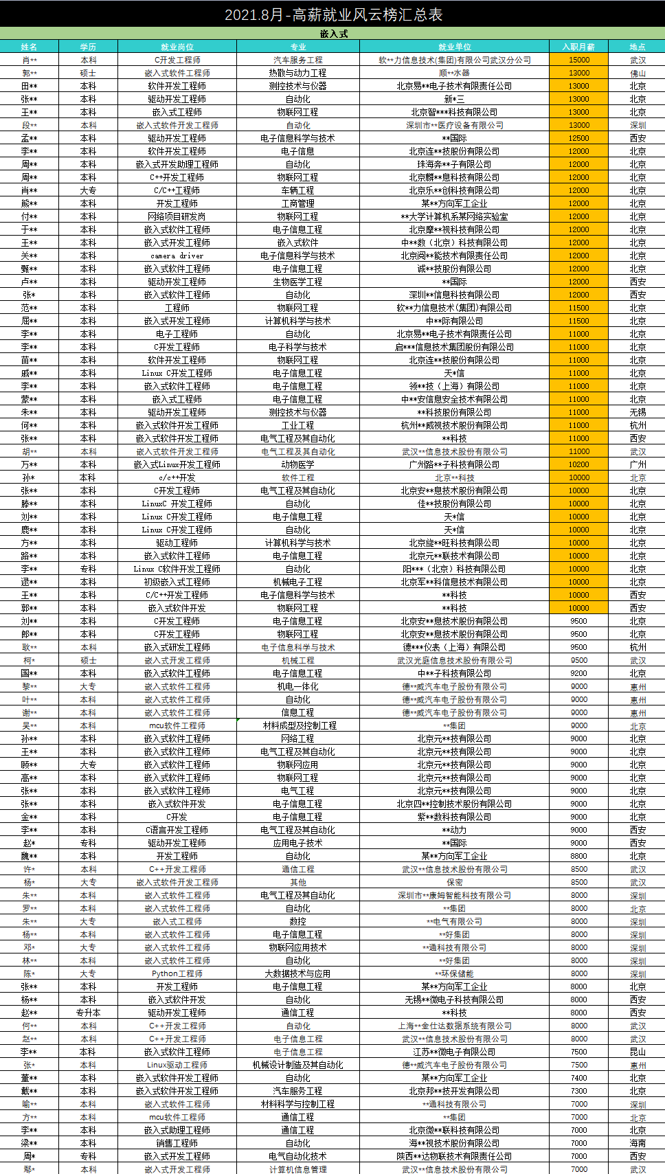 下面讓華妹帶大家看看8月就業(yè)風(fēng)云榜的名單吧!