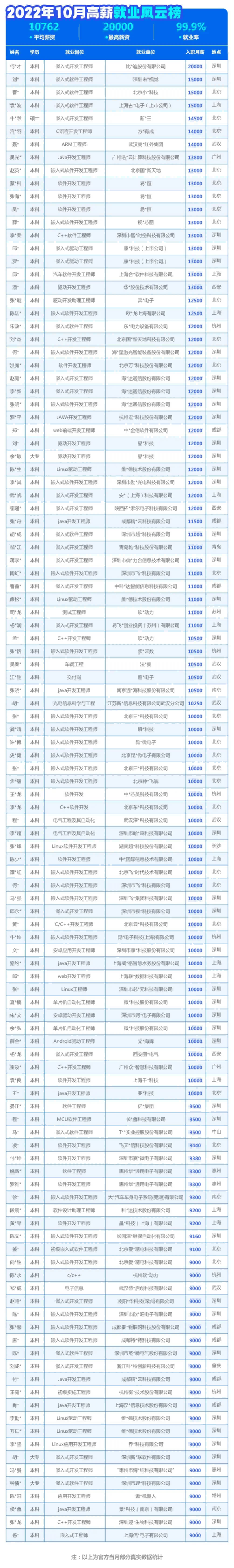 有很多學(xué)生來到華清遠(yuǎn)見學(xué)習(xí)嵌入式,每個月都有大量的學(xué)員成功就業(yè),這不華清遠(yuǎn)見10月就業(yè)風(fēng)云榜來襲,本月學(xué)員平均月薪10762元,最高月薪20000元,華清學(xué)子真是優(yōu)秀。