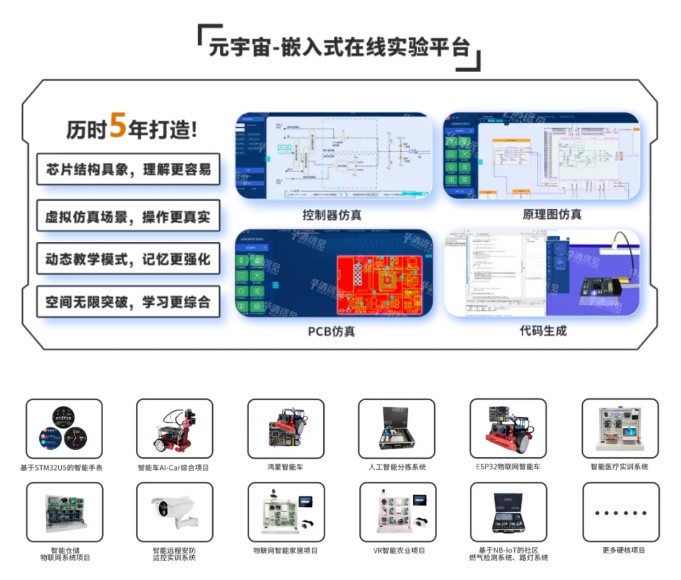 華清遠見自主研發(fā)元宇宙嵌入式在線實驗平臺,為開發(fā)者解決無法脫離硬件學習、芯片內(nèi)部結(jié)構(gòu)抽象、系統(tǒng)性學習難三大問題,讓教與學更簡單靈活。除理論知識外,平臺配套十余款企業(yè)級項目供開發(fā)者實踐操作,理論實踐共同幫助開發(fā)者全面掌握嵌入式全領(lǐng)域技術(shù)。