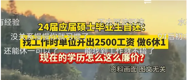 一位24屆應(yīng)屆碩士畢業(yè)生自述:找了一份單休工作,月薪2500......七年的本碩生涯,真的沒想到最后工作只有2500。