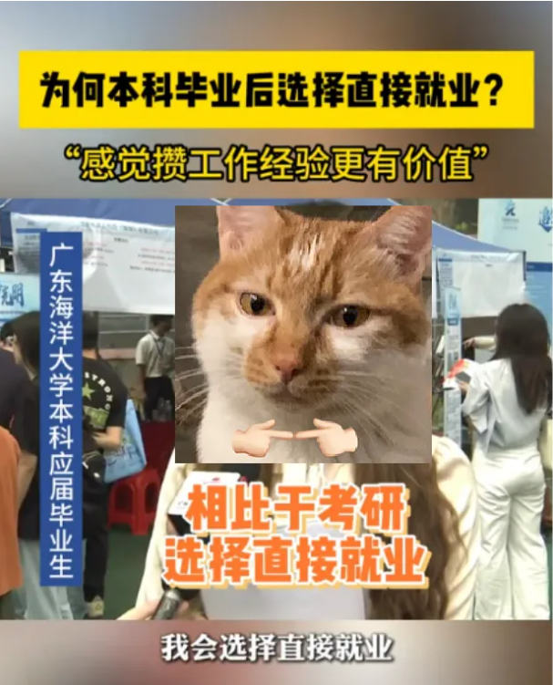 甚至在采訪中,有高校應(yīng)屆大學生表示:相比于考研,我會選擇直接就業(yè),感覺攢工作經(jīng)驗更有價值。