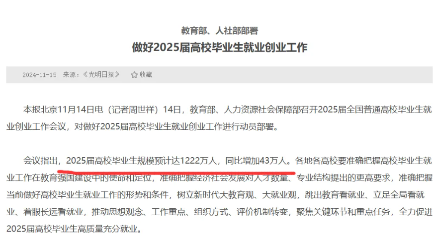 根據(jù)中國教育部數(shù)據(jù),2025年高校畢業(yè)生人數(shù)預(yù)計(jì)為1222萬人,確保重點(diǎn)群體就業(yè)穩(wěn)定成為重要目標(biāo),但就業(yè)市場的供需矛盾依然十分突出。