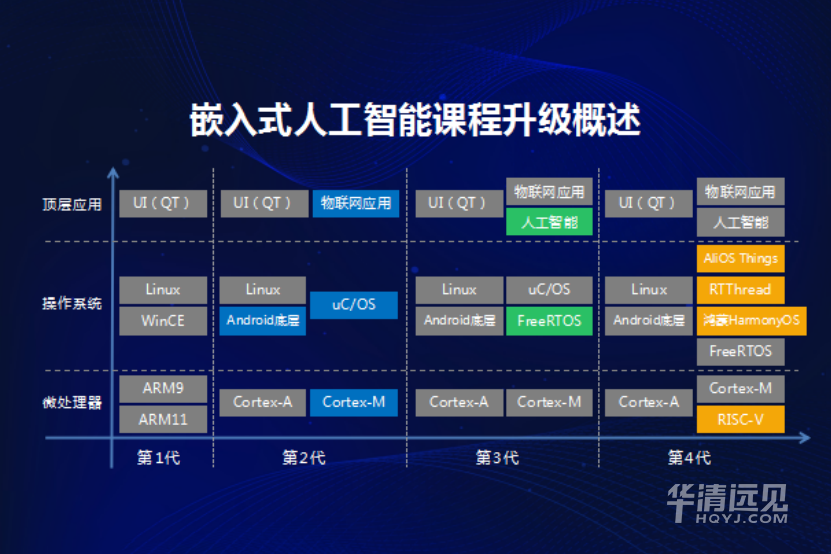 2021年,華清遠(yuǎn)見不僅完成了品牌升級,也將核心課程進(jìn)行了全面升級。升級后的嵌入式AI課程中,微處理器增加了最新的RISC-V,開發(fā)課程新增AliOS Things、RT-Thread、鴻蒙HarmonyOS三大熱門系統(tǒng)的學(xué)習(xí),頂層運用課程則包含UI(QT)、物聯(lián)網(wǎng)應(yīng)用、人工智能三大板塊,全方位提升學(xué)員的核心競爭力。課程在研發(fā)中聚焦學(xué)員就業(yè)崗位及薪酬,針對性升級了50%的學(xué)科內(nèi)容,同時針對在職人群,線上學(xué)習(xí)線下實戰(zhàn)的新模式,解決了在職學(xué)員的學(xué)習(xí)時間碎片化的難題。此次升級緊隨行業(yè)技術(shù)前沿,滿足學(xué)員多元化需求。同時華清遠(yuǎn)見匯聚了國內(nèi)最頂尖的IT行業(yè)資深專家和技術(shù)精英,擁有核心的技術(shù)研發(fā)力量和強(qiáng)大的教學(xué)資源,為廣大用戶提供個性化、實戰(zhàn)化、智能化的卓越在線學(xué)習(xí)體驗。