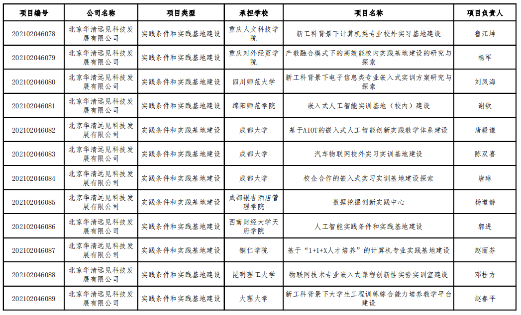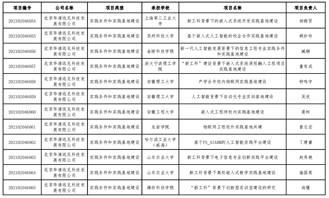 華清遠(yuǎn)見(jiàn)根據(jù)《教育部高等教育司關(guān)于公布有關(guān)企業(yè)支持的產(chǎn)學(xué)合作協(xié)同育人項(xiàng)目申報(bào)指南(2021年第二批)的通知》要求,高度重視并積極組織有關(guān)高校師生提交項(xiàng)目申請(qǐng),組織專家對(duì)申報(bào)項(xiàng)目進(jìn)行遴選并公示。