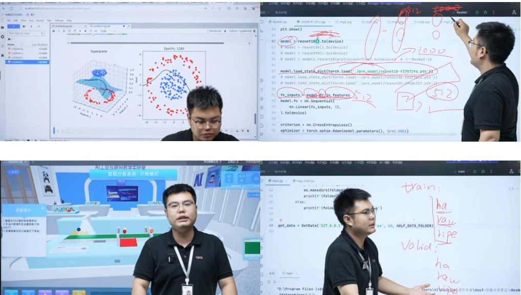 課程內(nèi)容涵蓋了從基礎理論到高級應用的全方位知識體系。首日課程聚焦于Prompt工程,引導學員探索如何在大語言模型中有效使用提示技術(shù),以生成更準確的模型輸出。隨后,韓老師以豐富的專業(yè)知識,深入講解了卷積神經(jīng)網(wǎng)絡的構(gòu)建和圖像處理應用,使學員們對這一核心技術(shù)有了更深刻的理解;深入探討了圖像分類算法,特別是深度學習領域的里程碑——ResNet架構(gòu)。學員們不僅學習了其背后的原理,還通過實踐掌握了其應用。YOLO算法的介紹,作為第四天的亮點,讓教師們對實時目標檢測技術(shù)有了全新的認識。最后一天的3D場景部署和NPU算法移植課程,將理論與實踐相結(jié)合,為學員們提供了硬件平臺優(yōu)化的寶貴經(jīng)驗。