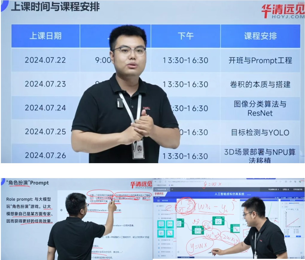 課程內(nèi)容涵蓋了從基礎(chǔ)理論到高級應(yīng)用的全方位知識體系。首日課程聚焦于Prompt工程,引導(dǎo)學(xué)員探索如何在大語言模型中有效使用提示技術(shù),以生成更準確的模型輸出。隨后,韓老師以豐富的專業(yè)知識,深入講解了卷積神經(jīng)網(wǎng)絡(luò)的構(gòu)建和圖像處理應(yīng)用,使學(xué)員們對這一核心技術(shù)有了更深刻的理解;深入探討了圖像分類算法,特別是深度學(xué)習(xí)領(lǐng)域的里程碑——ResNet架構(gòu)。學(xué)員們不僅學(xué)習(xí)了其背后的原理,還通過實踐掌握了其應(yīng)用。YOLO算法的介紹,作為第四天的亮點,讓教師們對實時目標檢測技術(shù)有了全新的認識。最后一天的3D場景部署和NPU算法移植課程,將理論與實踐相結(jié)合,為學(xué)員們提供了硬件平臺優(yōu)化的寶貴經(jīng)驗。