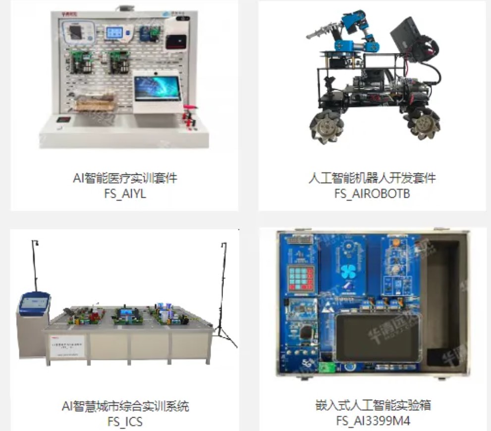 除培訓課程中展示的虛擬仿真軟件平臺,華清遠見還研發(fā)了一系列硬件平臺,如人工智能教學實驗平臺、人工智能機器人開發(fā)套件、AI工業(yè)互聯(lián)網(wǎng)教學實驗平臺、AI智慧城市綜合實系統(tǒng)等,硬件平臺在高校人工智能教學中扮演著至關重要的角色,不僅使教學內(nèi)容更加豐富和前沿,還通過實驗操作的便利性、理論與實踐的結(jié)合、教學資源的共享以及創(chuàng)新能力的培養(yǎng),極大地提升了人工智能教學的質(zhì)量和效果。