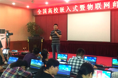 為進一步推動全國高等院校嵌入式暨物聯(lián)網專業(yè)教學工作的開展,加強各高等院校同行間的交流,培養(yǎng)嵌入式及物聯(lián)網的師資力量,2016年7月22日上午9時,在工信部軟件與集成電路促進中心和教育部教育管理信息中心指導下,由華清遠見教育科技集團主辦、軟件行業(yè)協(xié)會嵌入式系統(tǒng)分會協(xié)辦,并聯(lián)手ARM、飛思卡爾、Atmel共同舉辦的"全國高校嵌入式暨物聯(lián)網師資培訓班"在京隆重開講。此次會議的參會嘉賓有華清遠見教育科技集團少�?偛眉揪梅�、研發(fā)中心技術總監(jiān)劉洪濤,以及來自全國近五十所學校的近百名精英教師。