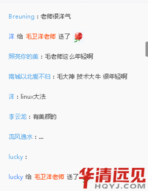 觀看本場(chǎng)直播的小伙伴們有所感悟,在答辯時(shí)間向毛衛(wèi)洋先生提出了很多問(wèn)題,現(xiàn)場(chǎng)氣氛活躍。為了表達(dá)對(duì)毛先生的喜愛,還紛紛送出了小紅花~