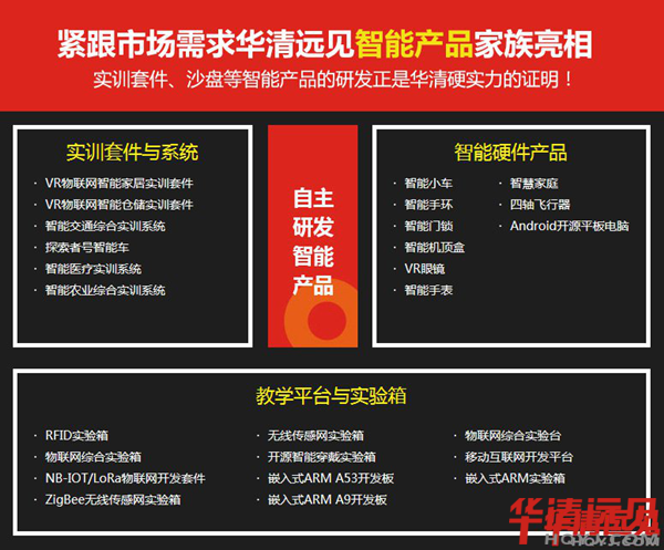 正如世界杯戰(zhàn)場的硝煙永不停歇一樣,華清遠(yuǎn)見在智能產(chǎn)品研發(fā)上也不會(huì)停下腳步。從2004年成立至今,華清遠(yuǎn)見自主研發(fā)實(shí)訓(xùn)項(xiàng)目及實(shí)驗(yàn)平臺(tái)60余套,應(yīng)用于千余家合作院校及企業(yè),其中20余例研發(fā)成果獲得國家專利,內(nèi)容包括熱門實(shí)訓(xùn)套件與系統(tǒng)、智能硬件產(chǎn)品及各種實(shí)驗(yàn)箱。未來,華清遠(yuǎn)見將繼續(xù)研發(fā)更多適用于市場、高校的實(shí)驗(yàn)平臺(tái),讓更多IT愛好者從中受益!