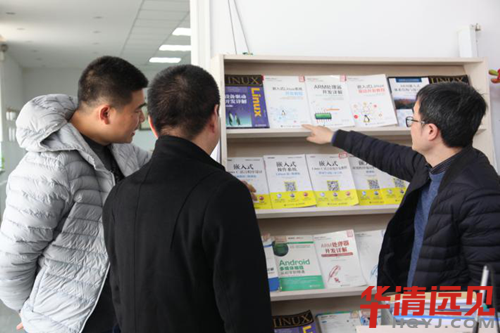 在參觀華清遠見原創(chuàng)出版圖書展區(qū)時,華清遠見教材出版的實力,得到了長春信息技術(shù)職業(yè)學院楊副院長、張主任的極大認可。圖書教材,一直也是高校專業(yè)建設(shè)非常關(guān)注的一環(huán)。華清遠見從2008年便開始啟動圖書出版的工作,10年來,華清遠見已出版了90余套專業(yè)教材,30%被高校納入嵌入式人才培養(yǎng)規(guī)劃指定教材,10%被列為工信部國家信息人才緊缺工程指定教材,80%為千余所高校圖書館里的熱捧教材。華清遠見整合課程體系/實訓項目/配套教材/實驗設(shè)備的一體化的高校合作模式,也是眾多院校選擇華清遠見作為專業(yè)共建/實驗室建設(shè)等合作方的重要原因。