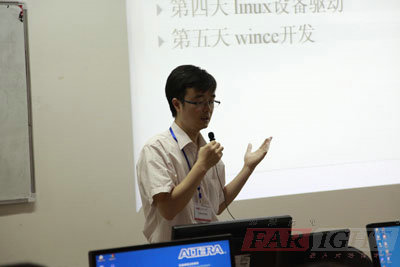 在師資班的開學(xué)典禮上,主辦方華清遠見科技信息有限公司的總裁季久峰先生也對各高校的教師表示了熱烈的歡迎,介紹了本次培訓(xùn)的內(nèi)容和目的,表達了做為專業(yè)的嵌入式培訓(xùn)機構(gòu),希望在今后能夠和各高校建立長期的聯(lián)系,盡我們所能幫助各高校嵌入式教學(xué)工作的開展。為期5天的師資培訓(xùn)內(nèi)容涵蓋了嵌入式Linux、ARM、Wince等非常重要的知識點,華清遠見派出了兩位高級講師:劉洪濤老師和蒙洋老師實施培訓(xùn)。