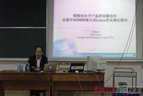 從2012年4月14日至2012年4月21日為期一周的時間,華清遠見教育科技集團攜手全球的半導體知識產(chǎn)權 (IP) 提供商ARM公司及知名的半導體公司恩智浦半導體NXP Semiconductors N.V.,共同推出主題為“智能化電子產(chǎn)品開發(fā)新趨勢及基于ARM的嵌入式Linux開發(fā)核心技術”的全國大型巡回公益技術講座,分別在華清遠見成都中心--四川大學(望江校區(qū))五教101教室、南京中心--漢庭連鎖酒店3樓大會議室、武漢中心--武漢理工大學鑒湖校區(qū)鑒二301教室、北京總部--北京市海淀區(qū)北四環(huán)中路238號柏彥大廈3層301室、上海中心--上海虹漕南路55號3樓第一教室、深圳中心--深圳大學科技樓一樓3號報告廳隆重舉行,自此由ARM公司及恩智浦公司眾多技術專家和華清遠見知名技術專家聯(lián)袂奉獻的嵌入式系統(tǒng)設計主題盛宴圓滿落幕。 本次系列講座分享的主題為:“智能化電子產(chǎn)品開發(fā)新趨勢及基于ARM的嵌入式Linux開發(fā)核心技術”,活動當天,眾多的嵌入式技術愛好者們都積極踴躍地參與到本次研討活動中,整個會議中心座無虛席,大家認真聆聽ARM公司專家、恩智浦產(chǎn)品專家及華清遠見嵌入式技術專家的經(jīng)驗分享。