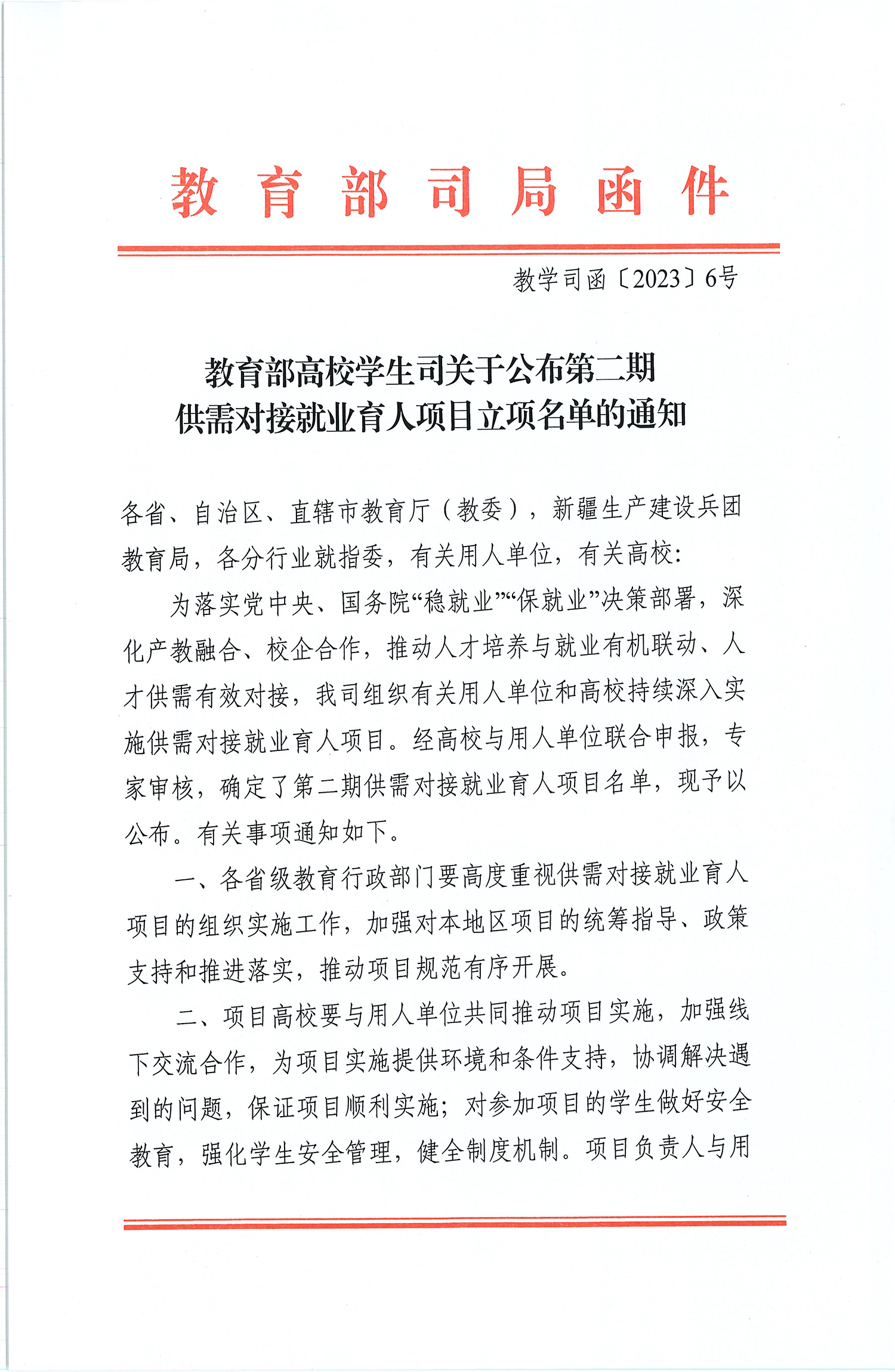 為深入貫徹黨的十九屆六中全會和中央人才工作會議精神,貫徹落實《國務院辦公廳關于深化產教融合的若干意見》(國辦發(fā)〔2017〕95號)和《教育部工業(yè)和信息化部中國工程院關于加快建設發(fā)展新工科實施卓越工程師教育培養(yǎng)計劃2.0的意見》(教高〔2018〕3號)要求,調動好高校和企業(yè)兩個積極性,實現(xiàn)產學研深度融合,我司組織有關企業(yè)和高校持續(xù)深入實施供需對接就業(yè)育人項目。