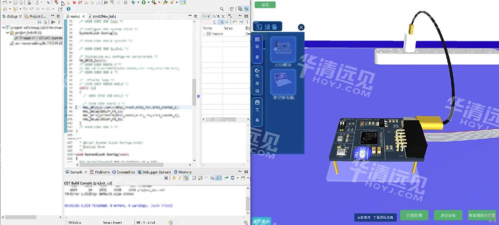 華清遠(yuǎn)見教育科技集團(tuán)充分發(fā)揮自身科研優(yōu)勢,耗時5年時間自主研發(fā)元宇宙嵌入式在線實驗平臺,以2D實驗、3D軟件仿真場景為依托,具象化展示嵌入式電路板結(jié)構(gòu)及控制器運行邏輯,在軟件平臺上實現(xiàn)嵌入式外設(shè)控制器理論教學(xué)、外設(shè)接口應(yīng)用教學(xué),培養(yǎng)嵌入式系統(tǒng)性開發(fā)思維。