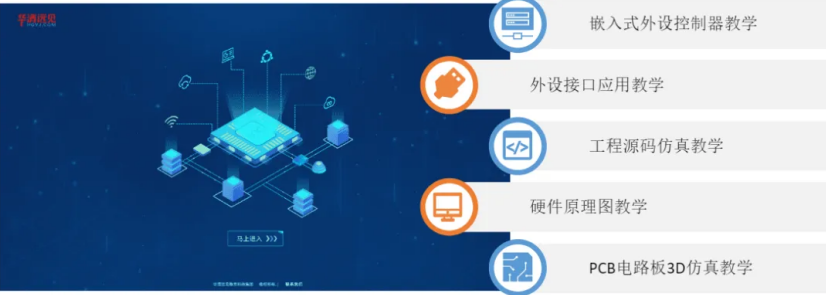 本次比賽最大看點便是華清遠(yuǎn)見自研的元宇宙嵌入式在線實驗平臺。元宇宙嵌入式在線實驗平臺以2D實驗、3D軟件仿真場景為依托,形象展示嵌入式電路板結(jié)構(gòu)及控制器運行邏輯,并拓展了組件化編程、單片機(jī)代碼生成等模塊。平臺最大亮點在于其具有豐富完善的平臺仿真功能,支持知識點項目管理、處理器內(nèi)核相關(guān)功能仿真、外設(shè)控制器仿真、原理圖應(yīng)用仿真、PCB各層線路仿真、3D電路板仿真、3D場景仿真、流程圖編程仿真、STM32CubeMXHAL庫源碼仿真、支持FreeRTOS及RT-Thread等RTOS、支持LVGL等UI,覆蓋整個嵌入式體系化教學(xué),可幫助解決嵌入式學(xué)習(xí)中芯片原理講解抽象、依賴大量的硬件平臺、體系化教學(xué)難等學(xué)習(xí)痛點。