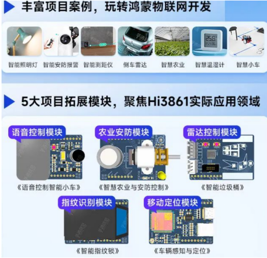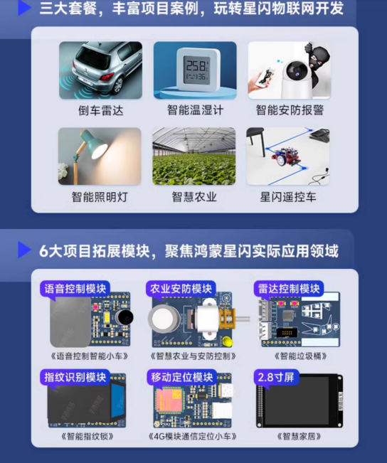 作為一款鴻蒙+星閃生態(tài)協(xié)同開發(fā)的學(xué)習(xí)板,華清遠(yuǎn)見WS63星閃物聯(lián)網(wǎng)開發(fā)板,配套了豐富的教程、視頻、源碼、項目等學(xué)習(xí)資料,包括傳感器實驗、Openharmony系統(tǒng)實驗、WiFi/星閃/藍(lán)牙網(wǎng)絡(luò)實驗、華為云實驗等,教程/視頻/源碼齊全。同時為了便于項目實戰(zhàn)練手,開發(fā)板還配套了豐富的項目拓展模塊及項目案例資源,學(xué)生學(xué)完就能做項目,可實戰(zhàn)智能家居、工業(yè)互聯(lián)網(wǎng)、智慧交通等方向的創(chuàng)意項目開發(fā)。