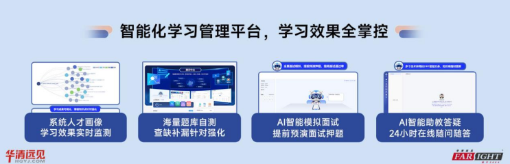 本次發(fā)布會另一大亮點則是華清遠見自主研發(fā)打造的AI助學系統(tǒng),囊括測評中心、AI助教、能力畫像三大功能板塊。測評中心配備全棧知識點題庫,并提供練習和考試兩種模式,支持章節(jié)小測、海量題庫背題/刷題、錯題集、AI全真模擬面試等多種功能實現(xiàn)。AI助教可以讓每位講師構(gòu)建專屬AI智能體,整合其技術(shù)知識與教學方法,真正實現(xiàn)24小時技術(shù)答疑,隨時響應(yīng)學生的需求,實時解決學習過程中遇到的問題。系統(tǒng)人才畫像則可以對你的學習進度實時監(jiān)控,實現(xiàn)學習成果動態(tài)可視化,針對薄弱知識點進行強化。