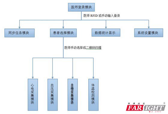 1、條形碼掃描模塊 2、體溫檢測(cè)模塊 3、心電檢測(cè)模塊 4、血糖檢測(cè)模塊 5、血壓檢測(cè)模塊