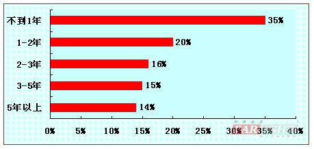 來自華清遠見2010-2011年度的行業(yè)調(diào)查數(shù)據(jù)顯示,目前從事嵌入式開發(fā)“不到1年”和“1-2年”的工程師所占的比例依然是大的,分別是35%和20%,占總參與調(diào)研人數(shù)的一半以上(55%),相對上屆調(diào)查報告的數(shù)據(jù)60%來說,低了5個百分點,而具備相對豐富開發(fā)經(jīng)驗的嵌入式工程師(2年以上工作經(jīng)驗)所占比例已開始直追50%。從這樣的一個發(fā)展趨勢中,我們不難看出,伴隨著整個嵌入式行業(yè)的快速穩(wěn)步發(fā)展,越來越多經(jīng)驗豐富的嵌入式工程師已經(jīng)開始成為推動嵌入式技術及企業(yè)高速成長的中堅力量。而結(jié)合本報告后面關于“企業(yè)人才需求現(xiàn)狀”的調(diào)查結(jié)果,我們也不難看到,嵌入式行業(yè)在經(jīng)過近兩三年的快速發(fā)展,已經(jīng)進入一個穩(wěn)定而成熟的高速發(fā)展和成長期,企業(yè)人才需求現(xiàn)狀依然保持供不應求的整體狀態(tài),雖然已經(jīng)有越來越多的核心技術人員加入到嵌入式專業(yè)領域,但依然無法滿足企業(yè)高速發(fā)展對人才的旺盛需求。預計在這樣一個人才市場活躍卻不失穩(wěn)定需求根基的情況下,嵌入式企業(yè)將呼喚更多嵌入式人才的加盟,以求更有效地支撐并帶動企業(yè)、乃至整個嵌入式行業(yè)的再一次提升,迎來嵌入式行業(yè)的新一輪發(fā)展與競爭的高潮。
