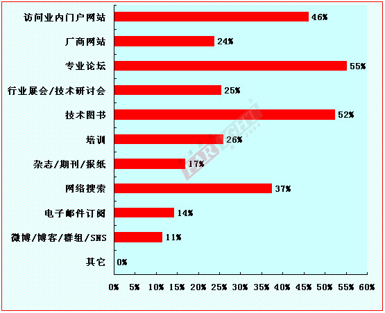 來自2012-2013年度的調(diào)查數(shù)據(jù)顯示,“專業(yè)論壇、技術(shù)圖書、訪問業(yè)內(nèi)門戶網(wǎng)站、網(wǎng)絡(luò)搜索”依然是嵌入式工程師獲取知識的幾個主要途徑,在參與調(diào)研的所有嵌入式工程師中,有55%的人會瀏覽專業(yè)論壇交流,52%的人會通過技術(shù)圖書學習,46%的人會通過訪問業(yè)內(nèi)門戶網(wǎng)站獲取新行業(yè)資訊,37%的人會通過網(wǎng)絡(luò)搜索獲取針對性問題的相關(guān)知識。除了以上4大主要的途徑之外,部分工程師也會通過專業(yè)技能培訓、廠商網(wǎng)站、行業(yè)展會/技術(shù)研討會、微博/博客/群組、雜志/期刊/報紙、電子郵件訂閱、微博/博客/群組/SNS社區(qū)等途徑獲取信息。從2004年至今,華清遠見對外公開提供的免費電子圖書、視頻教程等資料每年平均下載次數(shù)已達到15萬之多,特別是2013年推出的華清遠見10年特獻電子書贈送活動,更是受到了眾多嵌入式愛好者的熱烈歡迎,圖書訂閱索取量激增,這也可以從另一個側(cè)面反映出業(yè)內(nèi)工程師的旺盛的學習需求和主流的學習方式。