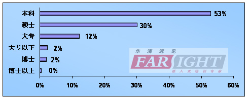 調(diào)查數(shù)據(jù)顯示,嵌入式開(kāi)發(fā)從業(yè)人員???歷以本科(53%)和碩士??30%)居多,占所有參與調(diào)查人員的83%,這??一??相當(dāng)大的比率。大專???歷??12%,而大專???歷以下、博??和博??以上學(xué)歷均分??僅占2%。嵌入式開(kāi)發(fā)目前屬于高??研發(fā)領(lǐng)域,??????歷要求較高,嵌入式從業(yè)人員至少應(yīng)具備大專???歷基???(???算機(jī)相關(guān)專業(yè)),本科以及???士則是這一領(lǐng)域從業(yè)人員的主體。從另???一??角度來(lái)???,這里的數(shù)??同樣也可以向我們展示企業(yè)在招聘嵌入式開(kāi)發(fā)工程師時(shí)的基本學(xué)歷要求??