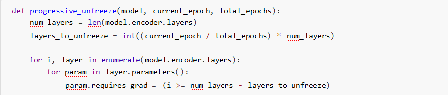 按照從底層到頂層的順序逐步解凍網(wǎng)絡參數(shù):
