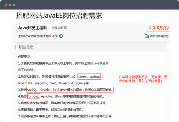 適合各種JavaEE工程師崗位招聘需求,就業(yè)面廣。