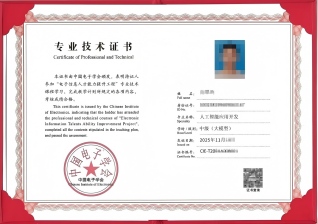 中國電子學(xué)會頒發(fā)高含金量《人工智能應(yīng)用開發(fā)-中級(大模型)》專業(yè)技術(shù)證書(認(rèn)證費500元/人,費用自理)
