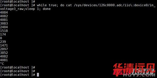 編譯并燒寫內(nèi)核,啟動(dòng)后即可在終端下運(yùn)行以下命令來讀取 ADC3 的值: