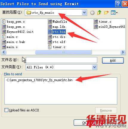 選擇文件工程中編譯生成的 .bin文件;并添加到files to send 列表;然后點擊OK