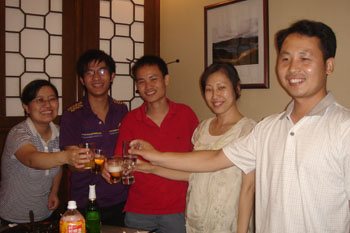 這一天,過得好快。結(jié)業(yè)典禮后,我們相約來到清華大學(xué)照瀾院餐廳二樓包間。在這里我們又一起舉起杯,相互碰撞,在這過程感覺到自己的心靈也在碰撞。同學(xué)們相互開著玩笑,共同回憶生活的小趣事,于是乎只聽一陣又一陣的笑聲。我們開心的吃著,喝著,同學(xué)們相互碰杯,小組之間相互留影,以記錄這一段深厚的友情。老師們頻頻舉杯,一次又一次同學(xué)的敬酒,讓我們感覺有些招架不住。