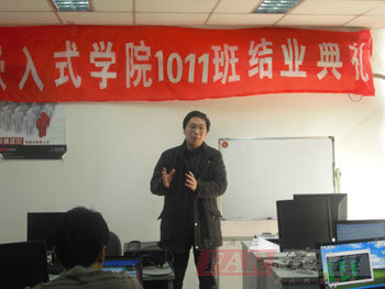 結(jié)業(yè)典禮首先由中心負責(zé)人高老師致詞,高老師對1011班學(xué)員這四個月的學(xué)習(xí)做出了肯定,也指出了同學(xué)們目前還存在的不足,對部分表現(xiàn)不錯的學(xué)員做了表揚,并講了關(guān)于學(xué)院培訓(xùn)基金的問題,希望學(xué)員們能夠常回來看看,工作中遇到問題也可以隨時回中心來咨詢老師,后祝愿大家都能找到理想的工作。